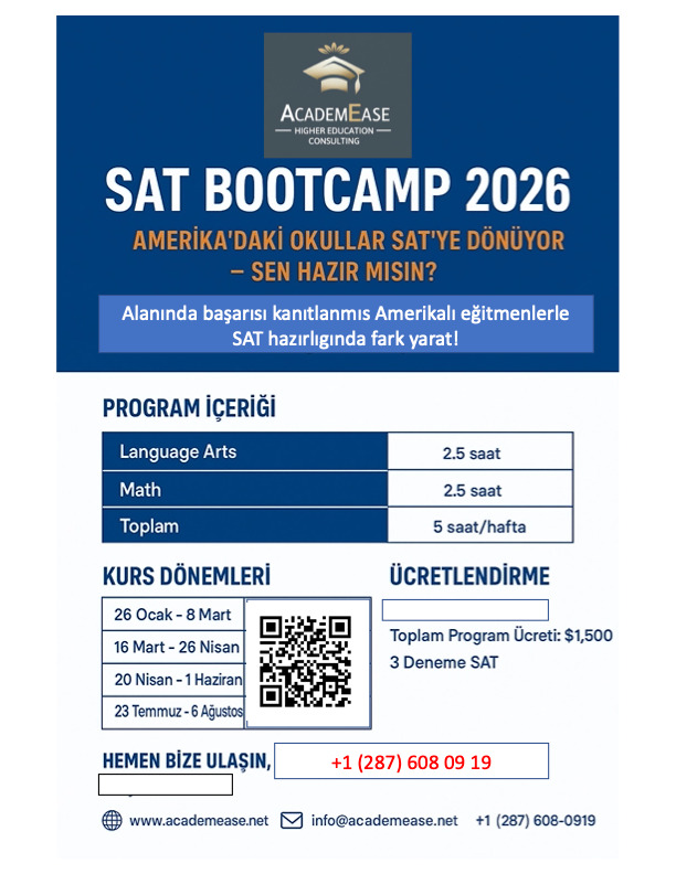 Alanında başarısı kanıtlanmış Amerika'lı eğitmenlerle SAT hazırlığında fark yaratın!